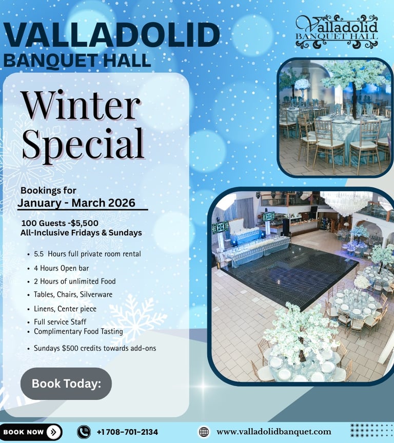 The Valladolid Banquet venue offers exceptional service, exquisite food options, and competitive pricing. Our experienced event planners and skilled chefs ensure every detail is taken care of.